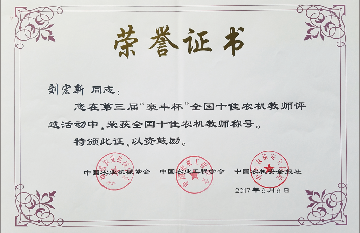 第三届“豪丰杯”全国十佳农机教师