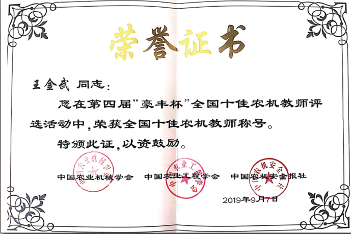 第四届“豪丰杯”全国十佳农机教师