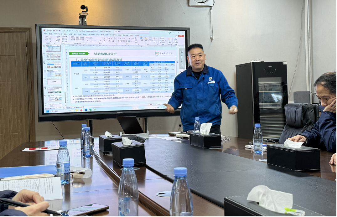 会上,乔金友结合课题任务书要求,就研究背景、试验方案设计与实施、试验结果与分析、结论与展望等内容进行详细汇报。研究结果表明:国产子午线轮胎可有效提高联合收割机的动力经济性、有效减少收割机作业对土壤的压实破坏;应用子午线轮胎是支撑农业机械化新质生产力发展的重要技术措施,可有力推进耕地保护和农业可持续高质量发展进程。陈永毅肯定项目组所做工作,研究成果充分证明轮胎类型和胎压是影响联合收割机作业效率和能耗的关键因素,为贵轮公司产品研发和推广提供有力支撑。王海代表贵州轮胎股份有限公司对项目组的辛苦工作表示感谢,指出提高联合收割机通过性和工作效率也是公司子午线轮胎产品研发的目标,王海代表公司对研究成果表示高度认可,明确此项目通过验收。