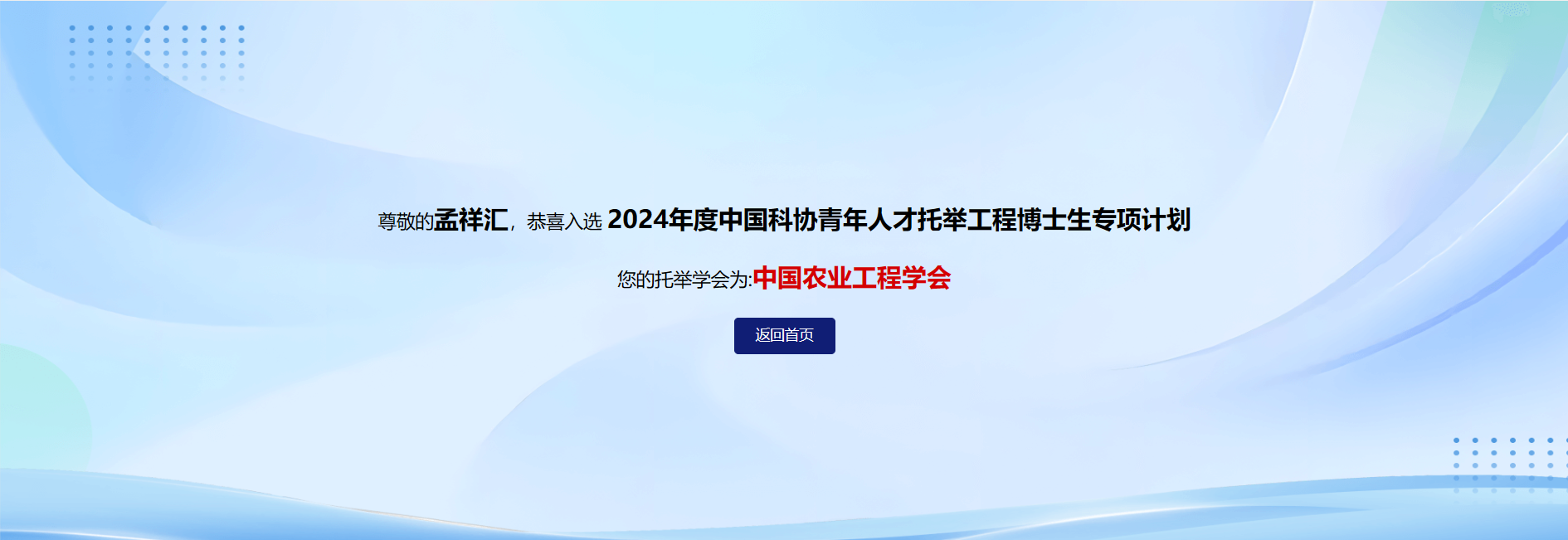 近日,中国科学技术协会公布了2024年中国科协青年人才托举工程博士生专项计划入选者名单,经过个人申报、学校科协推荐、省级科协推荐、中国科协评审,bv1946伟德寒地农村可再生能源综合利用团队程魁教授指导的博士研究生孟祥汇成功入选,由中国农业工程学会提供人才培养和托举服务工作。中国科协按照累计不超过人民币4万元的资助标准为入选者提供资助经费,托举期为2025年1月至2026年12月。