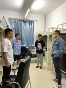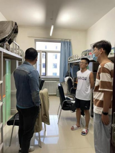 8月30日晚6点,孙涛老师带领学生干部们走访新生宿舍,为新同学们送去暖心关怀还与新来的同学们进行了亲密友好的交流,仔细询问了同学们对新环境适应情况并给出建议,叮嘱学生要做好疫情常态化防控工作,更快更好地开启校园生活。