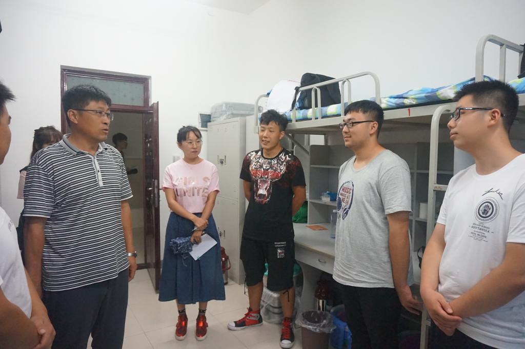 据了解,我院18级男女新生分别住在北八公寓和北一公寓。在走访过程中,全体新生都以朝气蓬勃的面貌和热烈的掌声迎接我院领导和老师的到来,院领导和老师们以寝室为单位,幽默风趣地与同学们进行了亲切友好的交谈,尽可能了解同学们的基本情况,就新同学来自什么地方、生活是否习惯、存在什么困难等问题进行了交流,并特别询问了来自南方的新同学是否适应了因地域产生的各种差异,让同学们能尽快熟悉新同学、新环境。同时也向新同学强调防诈骗、保护财产以及人身安全的意识,有问题及时向班助或辅导员老师联系,寻求帮助。