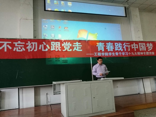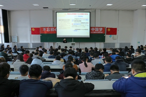 孙玉娟教授讲座的题目为《新时代、新使命、新思想、新征程——十九大的重大意义和历史贡献》,孙老师分别从“充分认识党的十九大的重要意义”、“深刻领会十九大的精神实质”、“坚定理想信念、勇做时代弄潮儿”三个方面对十九大精神进行解读。孙老师的讲座史料详实,深入浅出,思路清晰,说理透彻,给我院学生骨干灌溉了思想源泉,为深入践行十九大精神奠定了坚实的思想基础。