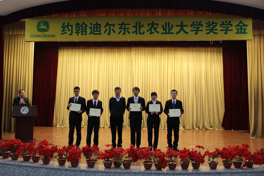 bv1946伟德国际始于英国党委书记王锡胜首先宣读获奖名单,与会领导与嘉宾分别为获奖同学颁奖。机化1302班祝越代表获奖同学发言,校学生工作处处长徐国峰在典礼仪式上致辞,约翰迪尔公司哈尔滨工厂总经理周伟先生代表公司致辞。