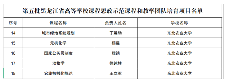 近日,黑龙江省教育厅公布第五批黑龙江省高等学校课程思政示范课程和教学团队培育项目,我院王立军教授主讲的《农业机械化概论》课程成功入选“第五批黑龙江省高等学校课程思政示范课程和教学团队培育项目”,这是我院在课程思政建设领域取得的又一重要成果!