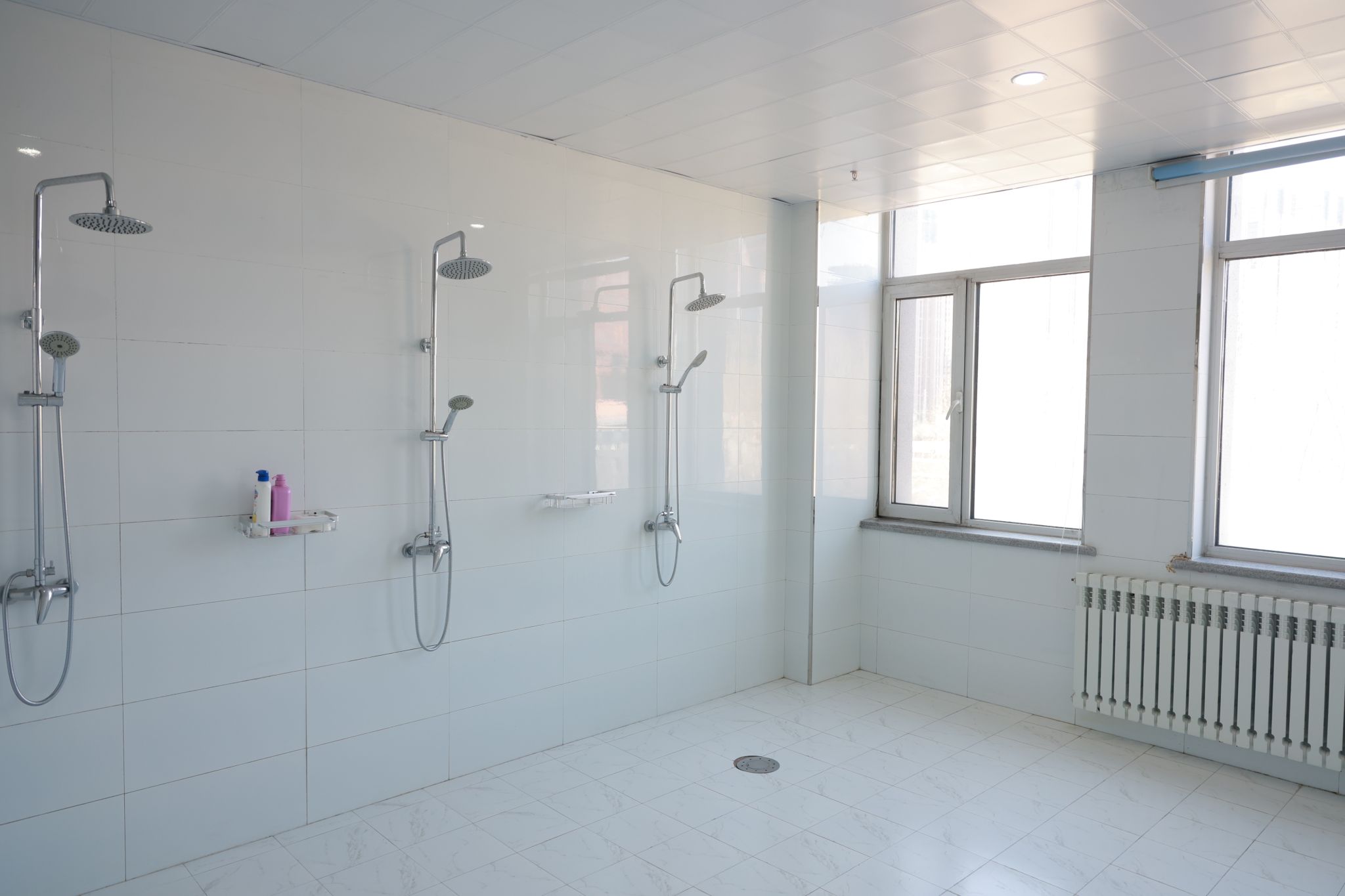 浴区新增吹风机、洗发水、沐浴露等日常洗浴用品,方便教职工使用。