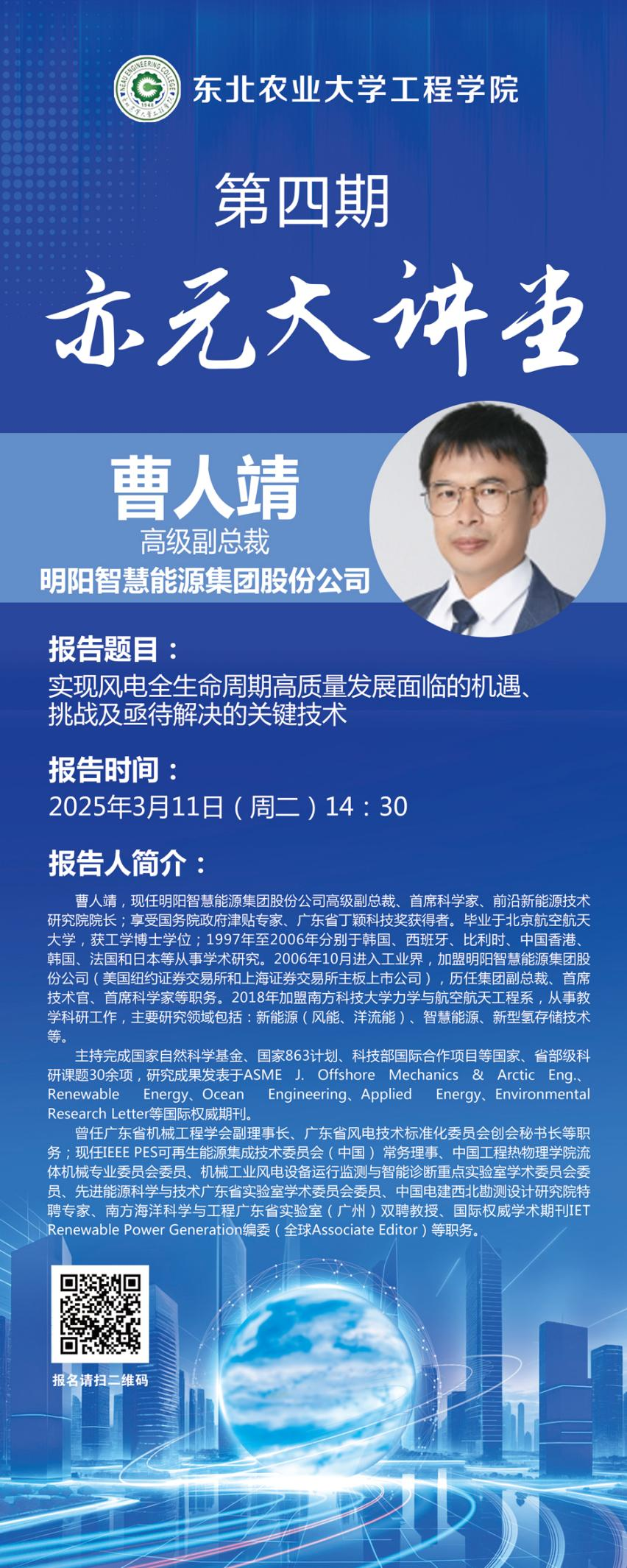 报告题目:实现风电全生命周期高质量发展面临的机遇、挑战及亟待解决的关键技术