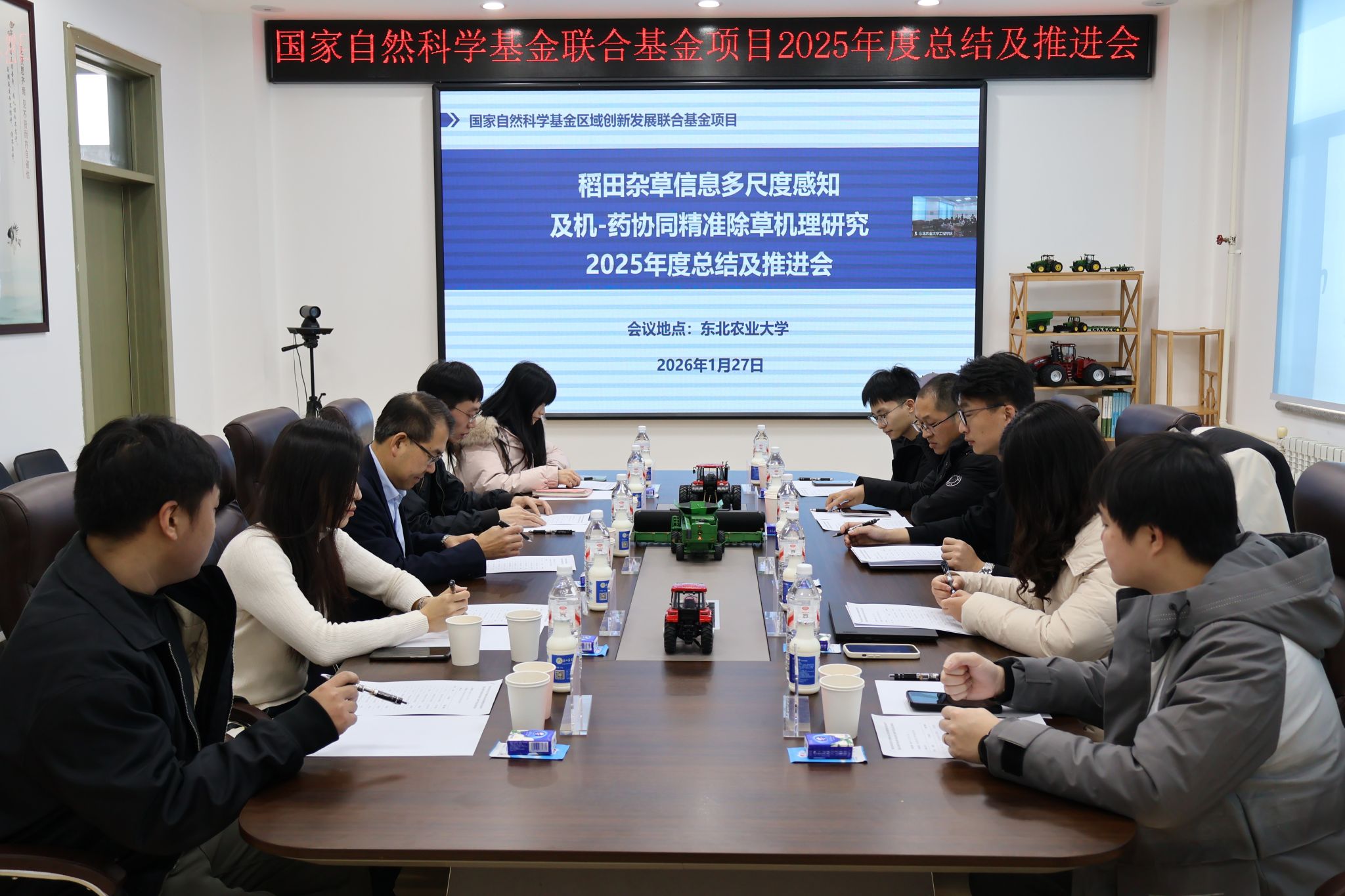 1月27日,国家自然科学基金联合基金项目“稻田杂草信息多尺度感知及机-药协同精准除草机理研究”2025年度总结及推进会在哈尔滨伟德国际召开。我院李岩院长、王奇副教授,项目依托单位华南农业大学马锐军副教授、龚浩副教授、安静讲师,项目合作单位湖南农业大学刘敏讲师等项目骨干成员及学生代表共10余人参加会议。会议由马锐军主持。