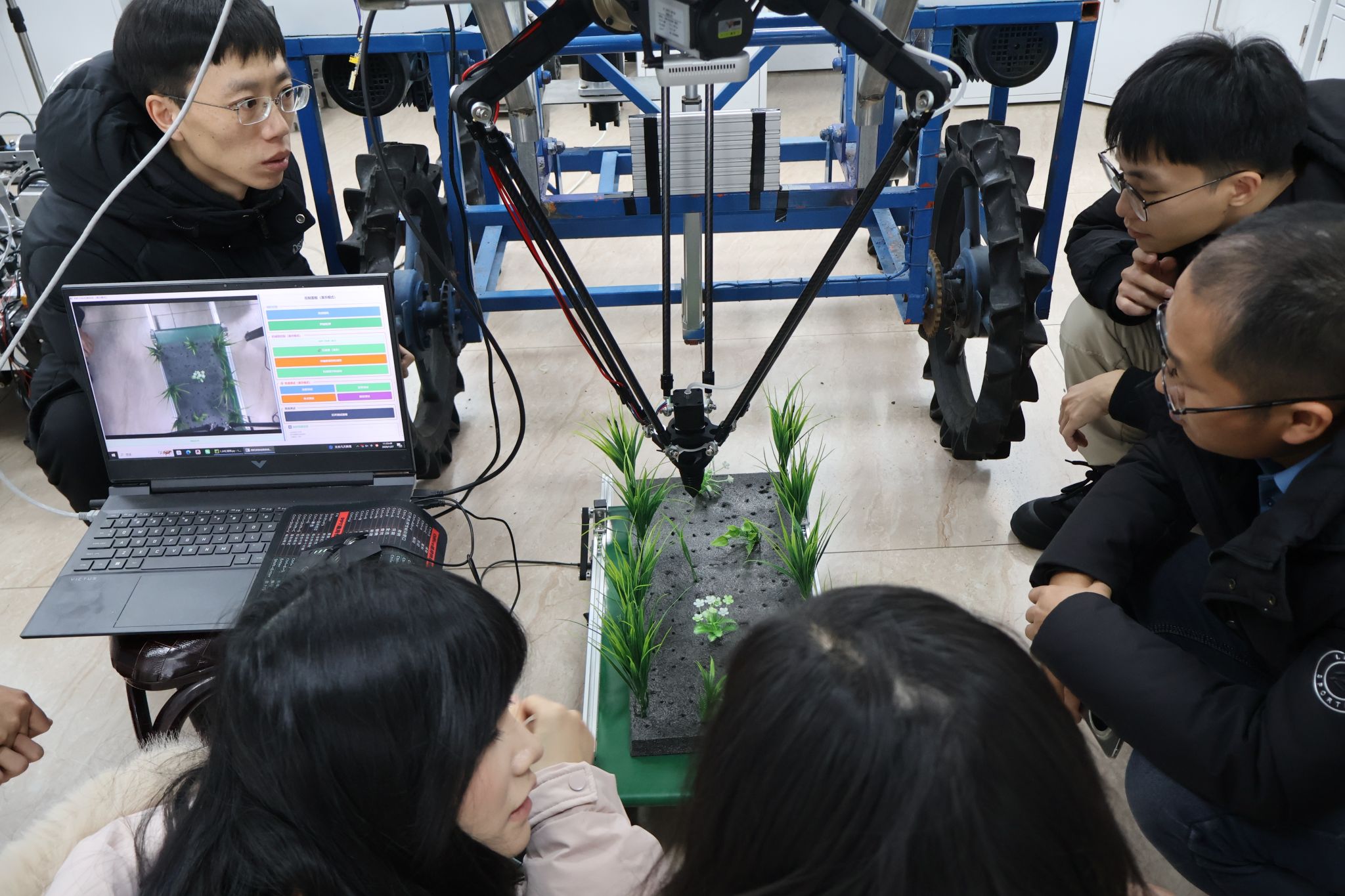 随后,参会人员现场观摩了王奇副教授搭建的“机械-药剂协同除草执行系统”作业演示,并围绕农艺要求、作业效果等展开交流研讨,为进一步优化设计提供了重要参考。