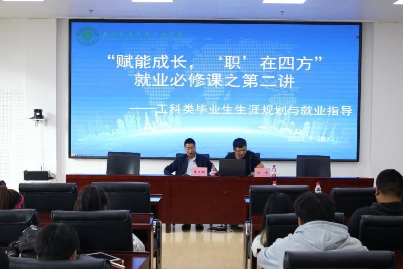 为帮助毕业生进一步了解就业形势,树立正确择业观,助力毕业生高质量就业,bv1946伟德于9月28日在工程楼522会议室举办“赋能成长,‘职’在四方”就业必修课之第二讲:工科类毕业生生涯规划与就业指导讲座。本次讲座特邀学校招生就业处黄月明担任主讲,2024届毕业班辅导员、毕业生代表线下参会,百余名毕业生线上参会,会议由学院党委副书记孙涛主持。