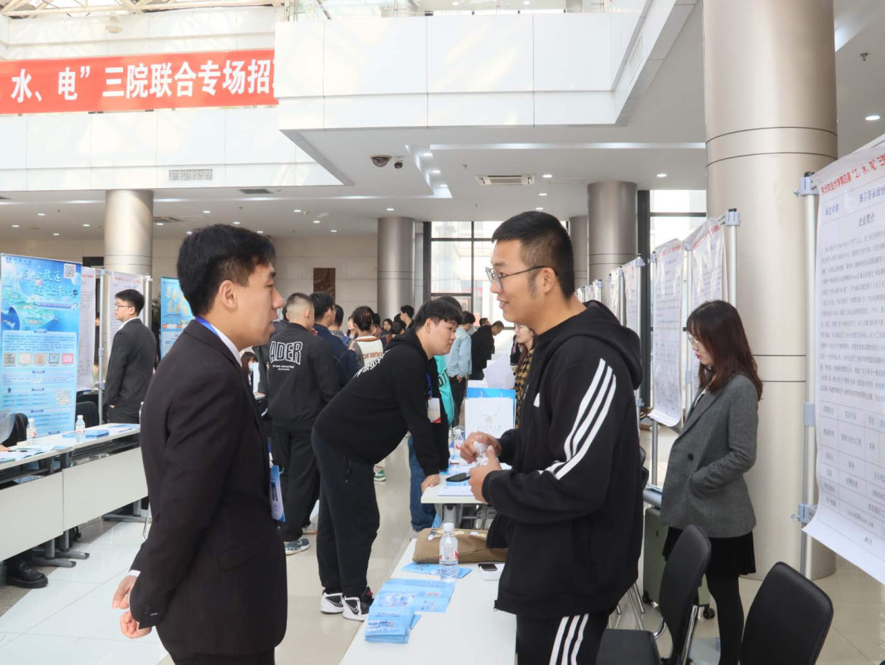 为积极响应习总书记人才强国的号召,切实推进人才兴国战略的实施,给广大毕业生与优质用人单位提供更好交流平台,鼓励毕业生积极投身于国家战略主战场,10月14日,由伟德国际招生就业处主办,bv1946伟德、水利与土木bv1946伟德、电气与信息学院三院联合承办的第四届“工、水、电”专场招聘会在音乐厅顺利举行。招生就业处处长宋跃芬、副处长吴立龙,bv1946伟德、水利与土木bv1946伟德、电气与信息学院领导班子成员、招生就业处工作人员和三院全体辅导员参加招聘会。