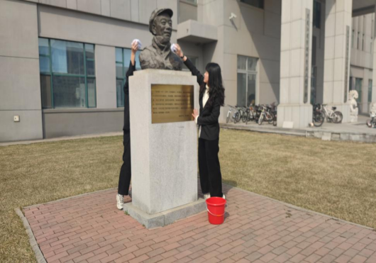 学生代表擦拭余友泰先生雕像