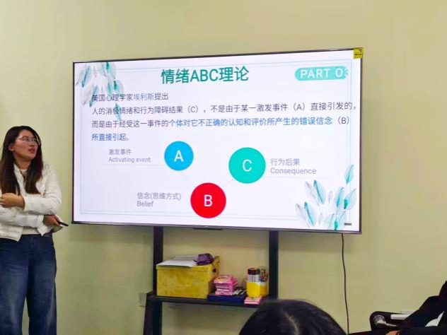 姚雪老师随后介绍了美国心理学家埃利斯的“ABC理论”,阐释认知评价与情绪反应之间的关系,帮助同学们识别并调整不合理信念,建立积极认知模式。