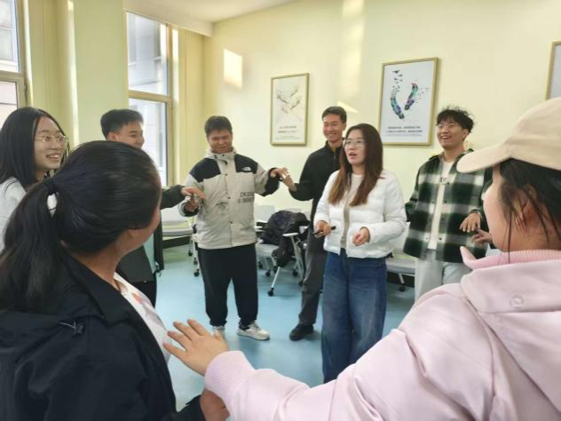 在“快乐手指游戏”环节,同学们通过轻松有趣的互动,缓解压力、拉近距离,为后续活动营造了良好的交流氛围。