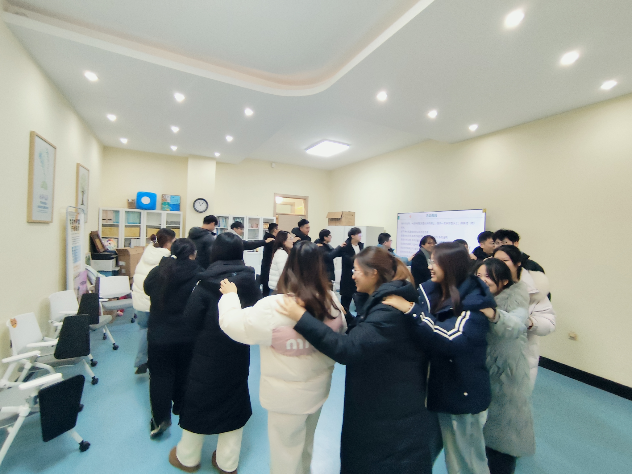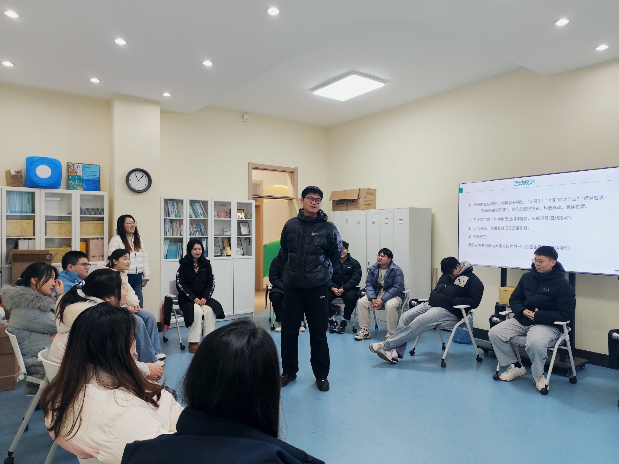 活动在温馨、安全的氛围中展开。姚雪老师首先引导同学们共同制定团体规则,确立自愿、保密、尊重与投入的原则,为后续环节奠定了信任基础。随后,通过大风吹破冰游戏,现场气氛迅速升温,同学们在互动中拉近距离,增强团体凝聚力。